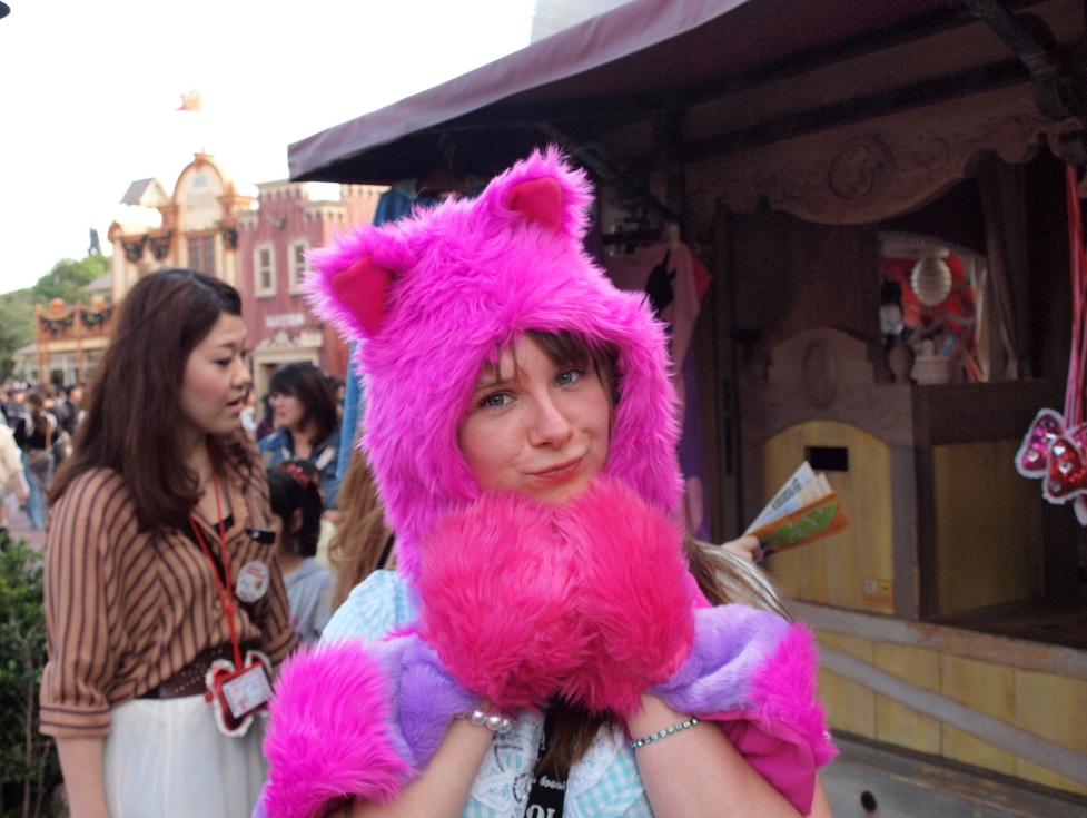 We walked on to Westernland (after taking a look at a fountain containing all the characters and animals from Snow White), where we found a stall selling merchandise. I loved how they all sold different things, although it made it a bit hard to remember where you had seen which things. One of my favourites was a bright pink and lavender Cheshire Cat-hood, that almost hurt my ees with its colour!
